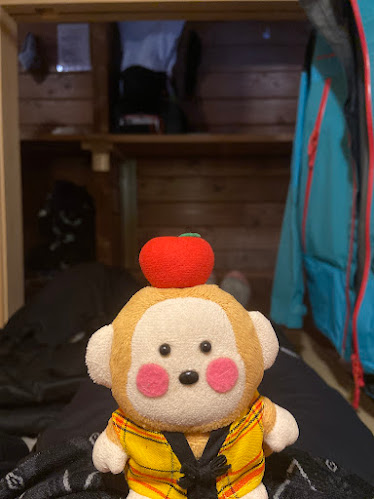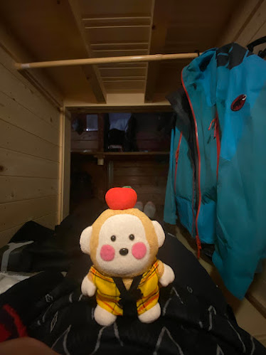 相変わらずの長い道のりを経て、七丈小屋へ到着する。ストーブの着いた暖かい部屋に荷物をおろし、部屋へ入る。コロナ後から、大部屋だったここも仕切られて個室のようになっています。