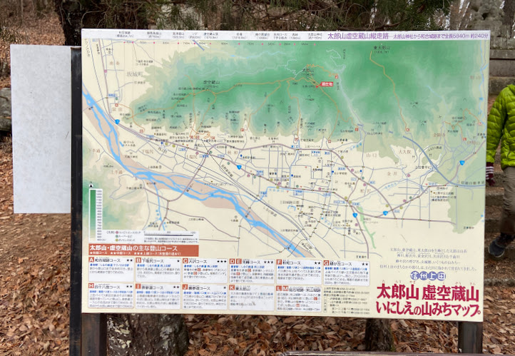 【登山道】表参道登山口から虚空蔵山へ縦走して、上塩尻・下塩尻へとそれぞれ降りるルートが有り。車が二台あると、登山口&下山口に停めれば縦走がしやすいです。登山道は明瞭で、地元の方がトレーニング山として毎日登山されている方も多く、地元の人に愛されている山だなぁと歩いていて感じました。