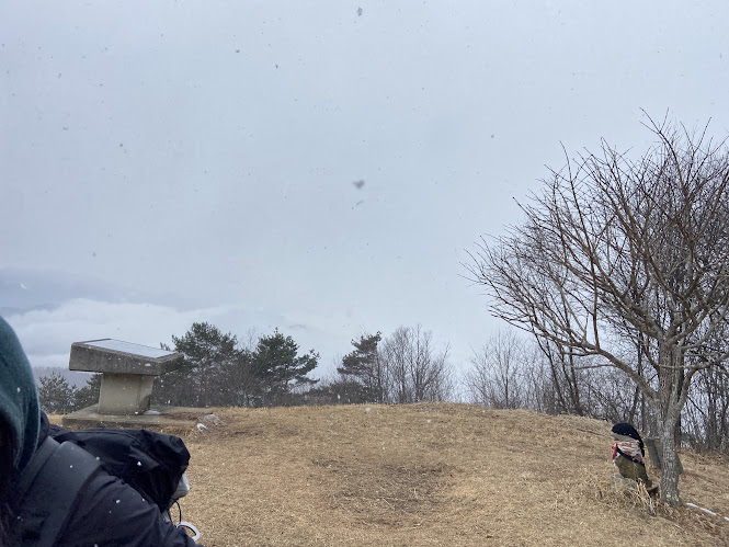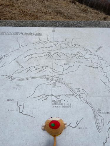 ここ、春とか景色も良くておにぎり食べながらのんびりするには最高だよね、とタマさんと話しながら、写真を撮ります。展望盤は、いつだって登山者の強い味方。