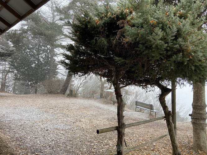 山頂は風も当たり寒いので、神社まで戻ってここで休憩。