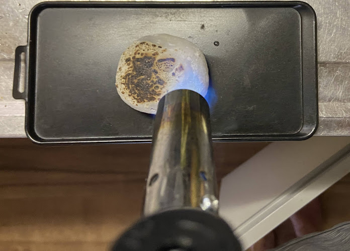でもこのパワートーチなら、硬くなりすぎる手前の焼き加減が可能なので、二日目の大福をいつも焼いています(3個入買うからさ、余るのよ。)