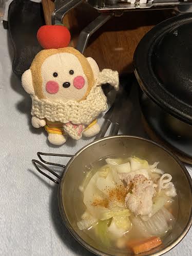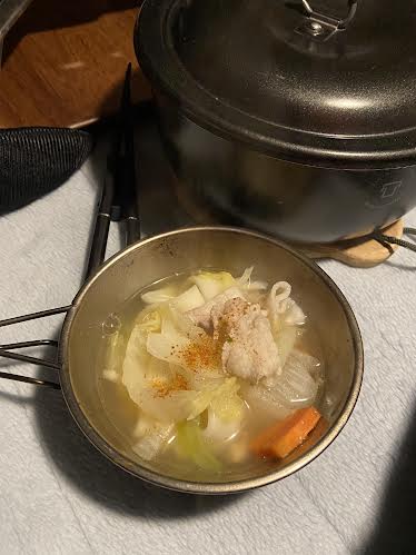 この日は、車に戻って車中泊飯。いつもの煮込みうどんです。