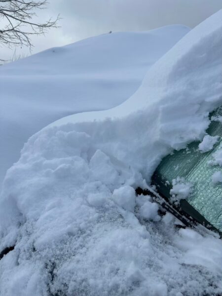 既にこんな状態。ワイパー掻き出しとかなきゃ。