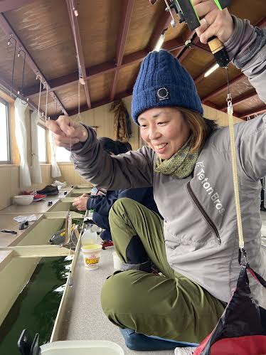 カナちゃんには事前に針のセットの仕方&餌の付け方の動画URLを送って自習しといてもらった。そしてちゃんとマスターしていたかなちゃん、エラい!