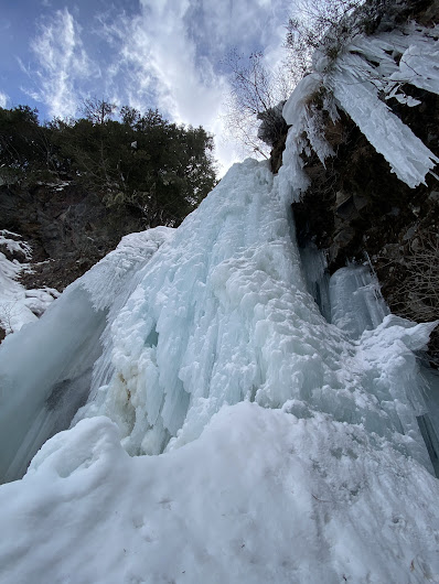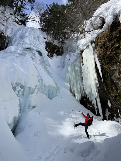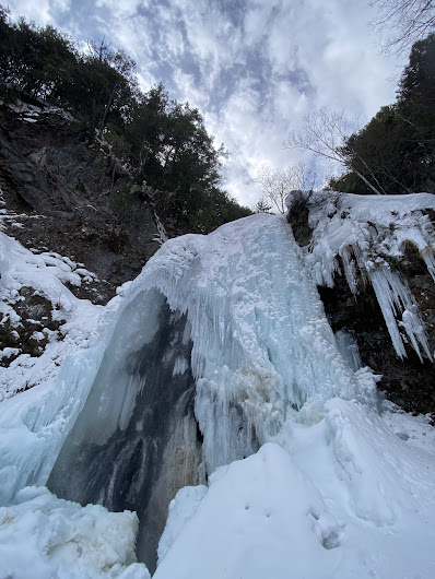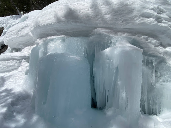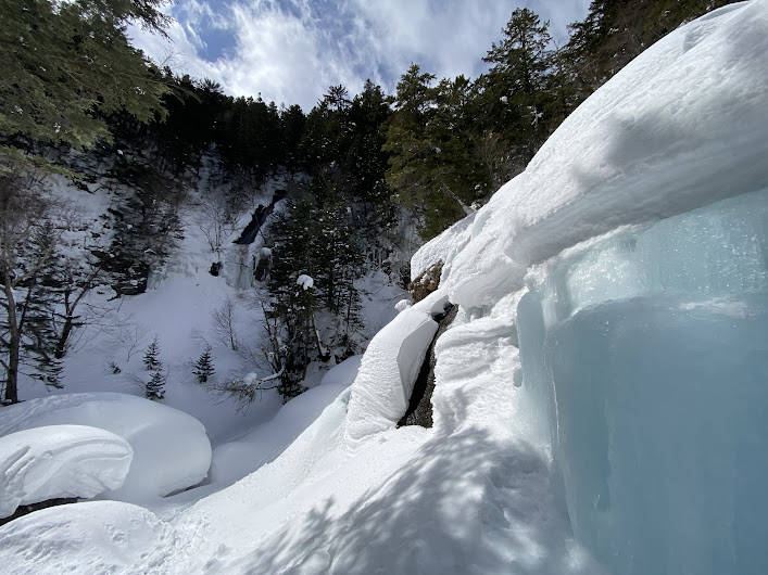 善五郎の滝は、前回来た時よりも融解は進んでいてがっぽり穴が空いていました。