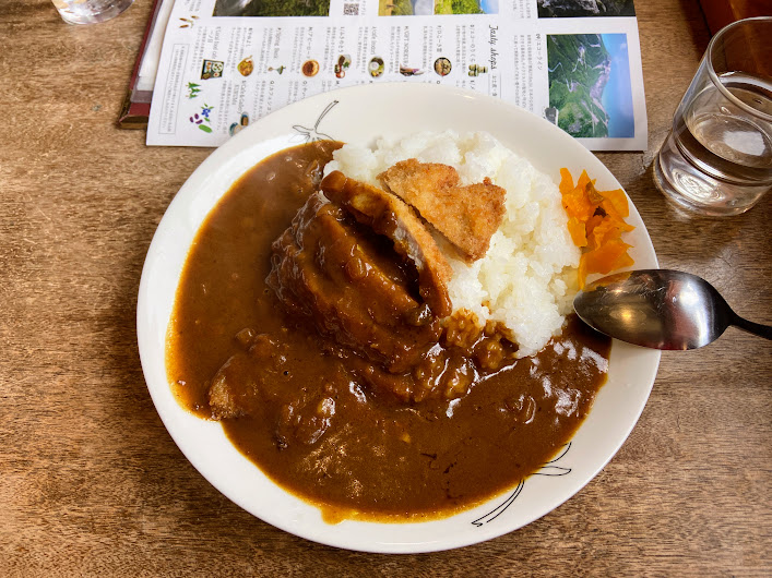 散々歩いて遊んで、車に戻り。おやつしか食べてないからお腹すいたよね、って事で遅めの昼ご飯。平日でお店もやってない所も多いのですが、なんとか見つけて2人とも腹ペコなのでカツカレーを。